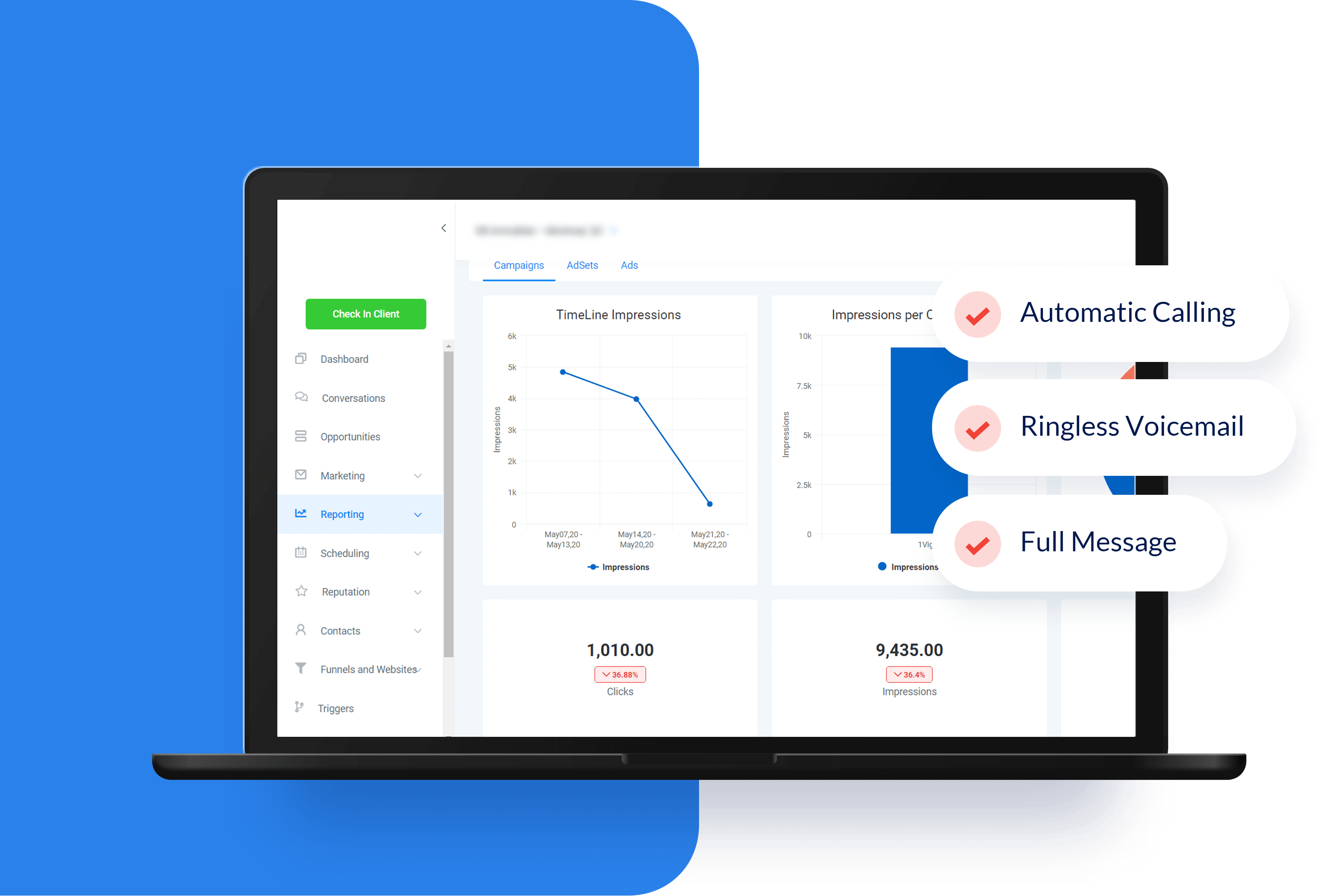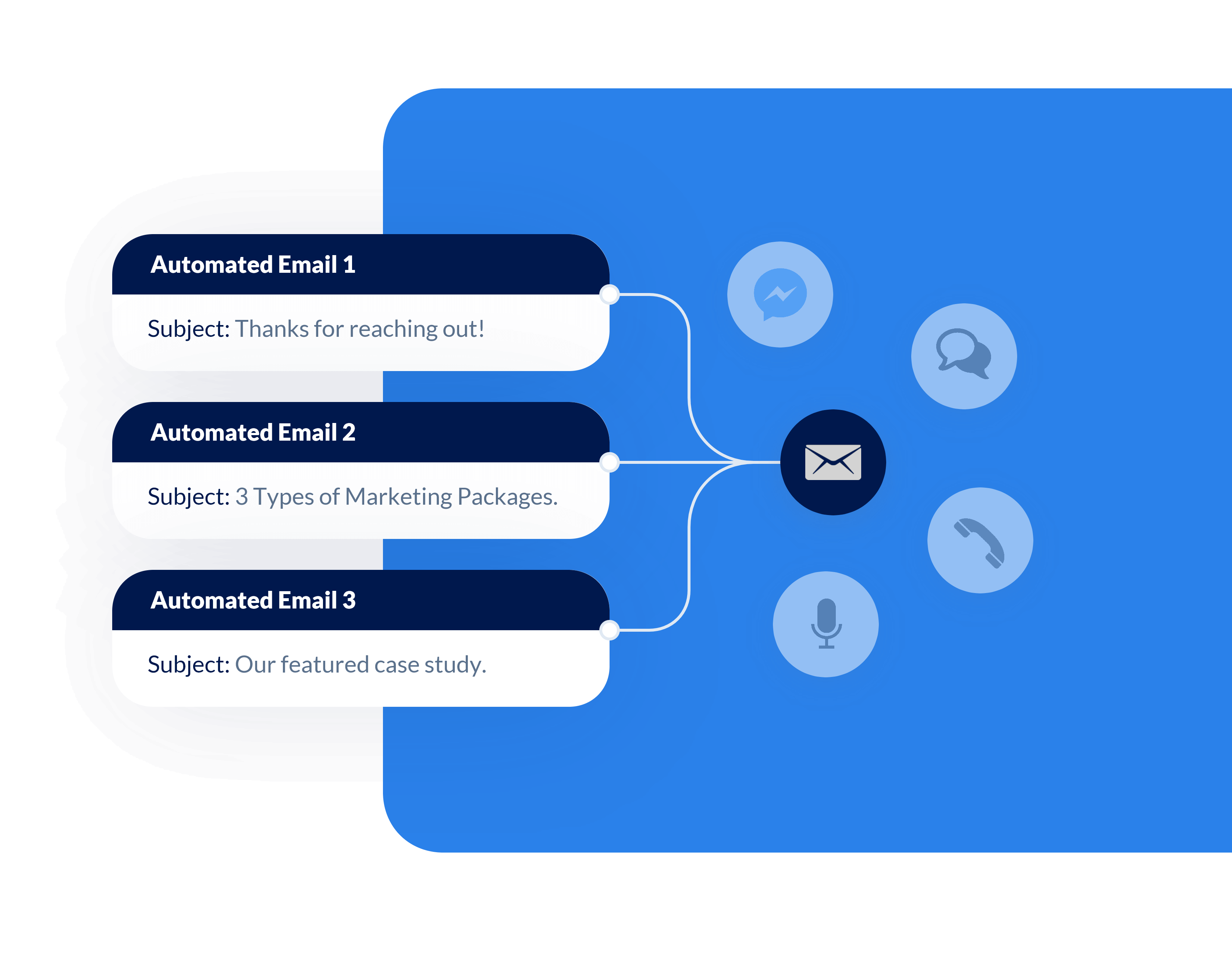 Build custom nurture campaigns that send text messages, emails, voicemails, and even Facebook & Instagram messages to convert leads automatically.